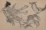 Sympathetic and gently probing, Amitavas paintings are peopled by figures of men and women, animals, trees, birds, clouds, the sky, earth, sun, and even the wind. They are all about humans who maintain their dignity, even while suffering, bearing pain without a murmur and with patient resolution and who have an ability to bend before adversity without breaking. Over these images presides the blue of the sky, light winds that ruffle the surface and the life-giving sunlight. The whole universe is encased in washes of colour, each finding its appointed place in the scheme of things.