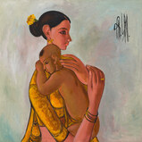 B. Prabha was born in the village of Bela, near Nagpur in Maharashtra in 1933. Growing up in a close-knit middle-class family, she studied at the Nagpur School of Art and went on pursue a Diploma in Painting and Mural Painting from the Sir J.J. School of Art, Mumbai. Although she worked mostly with oils on canvas, this modern painter did explore several media, styles and subjects before finally settling with oils as her preferred medium. Following her phase of experimentation, Prabha developed an elegant, formal style that remains her trademark. Her paintings cover a wide range of subjects, from landscapes to social issues like droughts, hunger and homelessness. A significant component of Prabha’s body of work is the artist’s self-conscious attempt to immortalize the plight of women in her country.