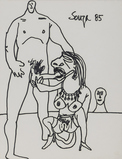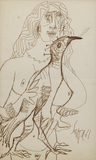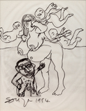Francis Newton Souza's unrestrained and graphic style created thought-provoking and powerful images. His repertoire of subjects covered still life, landscape, nudes and icons of Christianity, rendered boldly in a frenzied distortion of form. Souza's paintings expressed defiance and impatience with convention and with the banality of everyday life. Souza's works have reflected the influence of various schools of art: the folk art of his native Goa, the full-blooded paintings of the Renaissance, the religious fervour of the Catholic Church, the landscapes of 18th and 19th century Europe, and the path-breaking paintings of the moderns. A recurrent theme in his works was the conflict in a man-woman relationship, with an emphasis on sexual tension and friction. In his drawings, he used line with economy, while still managing to capture fine detail in his forms. He also used a profusion of crosshatched strokes that made up the overall structure of his subject.