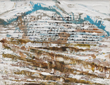 Pigment, acrylic, enamel and sand on paper and fabric