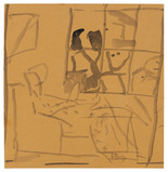 Subramanyan’s career began in earnest in the 1950s, and his early training in Santiniketan was evident. “[His early works] trace his transition from an impressionable student, influenced by two dissimilar mentors - Ramkinkar [Baij] and Benode Behari [Mukherjee] - to a young artist putting together the rudimentary framework of a visual language and vision of his own.” (R Siva Kumar, Self Portraits and Other Early Drawings, Kolkata: Seagull Foundation for the Arts, 2020)
