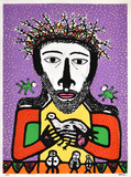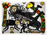 Madhvi's work has its inspiration in rural India, while her style is contemporary; influenced by artists such as Paul Klee and Clemente.