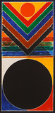 Raza worked mainly with a few primary colours, assembled and reassembled to simulate the passion and colours of his homeland. At the same time, he had realised the spiritual and metaphysical aspects of nature and began incorporating these principles in his works. In the late 1970s, the artist's focus turned to pure geometrical forms; his images were improvisations on an essential theme: that of the mapping out of a metaphorical space in the mind. Around this time, the bindu—a motif that would become synonymous with Raza’s art— began emerging in his work. It was the result of his concern with “pure plastic order” combined with his preoccupation with nature. “Both have converged into a single point and became inseparable; the point, the bindu, symbolises the seed, bearing the potential of all life, in a sense. It is also a visible form containing all the essential requisites of line, tone, colour, texture and space. The black space is charged with latent forces aspiring for fulfilment.” (Artist quoted in Sen, p. 134)
