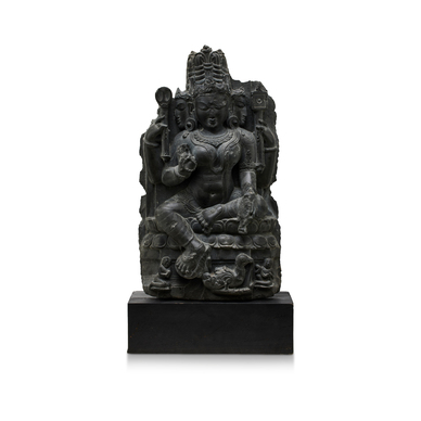 This sculpture is mounted on a detachable wooden base measuring 4 x 12.75 x 5 in (10 x 32.5 x 13 cm)