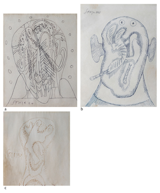 b) Untitled Signed and dated 'Souza 1968' (upper left) 1968 Pen on paper 10.75 x 8 in (27 x 20.5 cm) c) Untitled Signed and dated 'Souza 1969' (centre left) 1969 Pen on paper 7.75 x 7 in (20 x 18 cm)