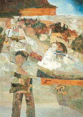 In this painting, the figure of a man is vaguely suggested at the forefront of the canvas. Echoing the earthy tones of his environment, he seems at times to melt back into the fractured planes of the painting. It is this chimerical manifestation of the human form that points to an integral facet of Ram Kumar`s aesthetic. Lacking all but a suggestion of facial features and distinct characteristics, the man is virtually devoid of individuality. He becomes a symbol of the fragility of human existence.