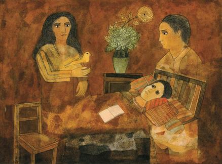 Born in July 1929, in Secunderabad, Andhra Pradesh, the self-taught artist Badri Narayan has been painting for over 45 years. During this time, he has worked as an art teacher and an artist, but has always remained a deeply introspective individual. This self-reflection and autobiographical perspective is the most constant theme in Narayan's work.