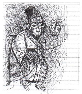 Ganesh Pyne is obsessed with death. He can't forget his first brush with death, in the summer of 1946, when communal riots had rocked Kolkata. His family was forced out of their crumbling mansion. As he roamed around the city, he stumbled upon a pile of dead bodies. On the top was the body of a stark naked old woman, with wounds on her breast. No wonder then his paintings rarely has light backgrounds, and blue and black happens to be his favorite colors. Death also finds its way back into his canvas through different motifs. Working mostly in tempera, his paintings are rich in imagery and symbolism. Pyne was born in Kolkata and grew up in a decaying mansion. He also grew up on stories told by his grandmother --- fold stories, mythological stories, and fairy tales. He spent several evenings in smoky Kolkata cafes discussing communism and Picasso with his friends. "My childhood memories revolve around Kolkata. The sounds and smells of this city fill my being. I love Kolkata." He doesn't remember the first time he started to paint, but does remember the anger that he drew from his family over his decision to become an artist. Pyne, nevertheless, took admission in the Government College of Arts and Crafts, Kolkata. "My first painting was 'Winter's Morning' which showed me and my brother going to school," he recalls. In 1963, he joined the Society for Contemporary Artists. During that period he made small drawings in pen and ink. "I did not have enough money then to buy color," Pyne says. This was also the period of experimentation. The anger and despair of the 70s fuelled one of the most fruitful periods' in his life as an artist that culminated in works like 'Before the Chariot' and 'The Assassin'. However, sometime in the 80s, he shut himself from the world, driven away by the jealousy and pettiness that the art bazaar arose among his friends. Initially, Pyne painted watercolors and sketches of misty mornings and wayside temples, variously influenced as he was by Walt Disney and the art of Abanindranath Tagore. He counts Hals Rembrandt and Paul Klee as the other influences. His signature style shaped from his own experiences of solitude, alienation, pain, horror and moods of tenderness and serenity comes to surface in each of his works. At times, these images are offshoots of an idea that may have flitted through his mind. At others, they resonate lines from poems that may have made an impression on his mind. The lines are bold, precise, controlled and the drawings that emerge are potent both in form and content. Stripped of color, they convey the architectonic quality in the structuring of the images. Equally devoted to cinema as he is to painting, Pyne has also drawn inspirations from movies made by Fellini and Ingmar Bergman. Today, he is known as the foremost exponents of the Bengal School of art. Pyne passed away in 2013.