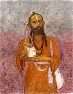 Ganesh Pyne is obsessed with death. He can't forget his first brush with death, in the summer of 1946, when communal riots had rocked Kolkata. His family was forced out of their crumbling mansion. As he roamed around the city, he stumbled upon a pile of dead bodies. On the top was the body of a stark naked old woman, with wounds on her breast. No wonder then his paintings rarely has light backgrounds, and blue and black happens to be his favorite colors. Death also finds its way back into his canvas through different motifs. Working mostly in tempera, his paintings are rich in imagery and symbolism. Pyne was born in Kolkata and grew up in a decaying mansion. He also grew up on stories told by his grandmother --- fold stories, mythological stories, and fairy tales. He spent several evenings in smoky Kolkata cafes discussing communism and Picasso with his friends. "My childhood memories revolve around Kolkata. The sounds and smells of this city fill my being. I love Kolkata." He doesn't remember the first time he started to paint, but does remember the anger that he drew from his family over his decision to become an artist. Pyne, nevertheless, took admission in the Government College of Arts and Crafts, Kolkata. "My first painting was 'Winter's Morning' which showed me and my brother going to school," he recalls. In 1963, he joined the Society for Contemporary Artists. During that period he made small drawings in pen and ink. "I did not have enough money then to buy color," Pyne says. This was also the period of experimentation. The anger and despair of the 70s fuelled one of the most fruitful periods' in his life as an artist that culminated in works like 'Before the Chariot' and 'The Assassin'. However, sometime in the 80s, he shut himself from the world, driven away by the jealousy and pettiness that the art bazaar arose among his friends. Initially, Pyne painted watercolors and sketches of misty mornings and wayside temples, variously influenced as he was by Walt Disney and the art of Abanindranath Tagore. He counts Hals Rembrandt and Paul Klee as the other influences. His signature style shaped from his own experiences of solitude, alienation, pain, horror and moods of tenderness and serenity comes to surface in each of his works. At times, these images are offshoots of an idea that may have flitted through his mind. At others, they resonate lines from poems that may have made an impression on his mind. The lines are bold, precise, controlled and the drawings that emerge are potent both in form and content. Stripped of color, they convey the architectonic quality in the structuring of the images. Equally devoted to cinema as he is to painting, Pyne has also drawn inspirations from movies made by Fellini and Ingmar Bergman. Today, he is known as the foremost exponents of the Bengal School of art. Pyne passed away in 2013.