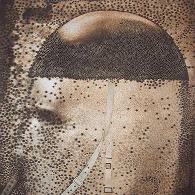 Helmet is part of the Unknown Soldier series Broota undertook in 1990s and 2000. These paintings are examples of Broota`s `nick-blade` technique, adopted in 1980, which involves scratching the surface of a pre-painted canvas with the sharp edge of a broken blade. Through this elaborate procedure, Broota enacts aesthetically the struggle of man. In this work, the face of the soldier is painstakingly delineated, carved out from the surrounding black gloom. As the image of the combatant wrestles for definition against the structure of the painted canvas, Broota underscores man`s inevitable battle for individuation and the formation of a distinct identity.