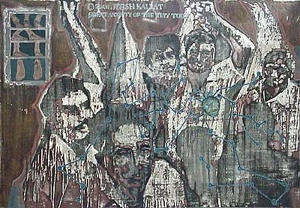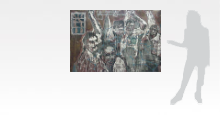 He chooses a method that is a very economical, nearly abstract , form of narrative. Images float around the protagonist, like icons on a computer screen, creating a webwork. The sources are "any visual material relevant to me." Images of the print media are photocopied, transferred on to the surface, hence 'real', as against the painted which he considers fictional. The images are like a picture puzzle, which the viewer has to decode and conclude upon. The treatment of the picture plane is like a battered wall, and refers to the duality in his painting.