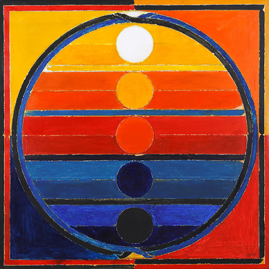 For Raza, colour, composition and structure are tightly interlinked to imbue meaning in a painting. The elements he refers to are pure geometric forms which are distilled to relate to Nature. This situates his art in centuries-old practices and beliefs shared across cultures, as art critic Geeti Sen observes. She goes on to...