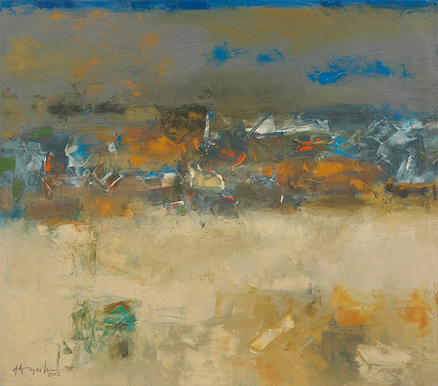Color is what fascinates K. M. Adimoolam. It is this and not any specific imagery that Adimoolam uses to interpret nature, making his paintings abstract renditions of the natural world purely through color.