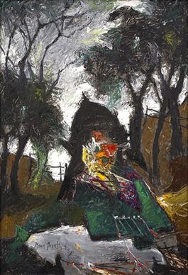 Polemics have always intrigued Manu Parekh – the energy of the organic form and the inherent sexuality within these forms are intangible elements in his works. His paintings provoke viewers to take notice of the world around them through the emotion, pain and anguish expressed in the subjects of his paintings. His colors and forms exude a volatile energy that can barely be contained within the confines of his canvas, and become an extension of the artist's personality.