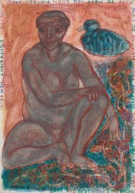 "Arpita Singh has pushed the visual lexicon of the middle-aged woman further than almost any other woman artist. The anomaly between the aging body and the residue of desire, between the ordinary and the divine and the threat of the violent fluxes of the impinging external world gives her work its piquancy and edge. At the same time she critiques the miasma of urban Indian life with suggestive symbols of violence that impinge on the sphere...