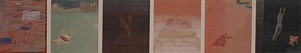 He (Agha Shahid Ali) seemed to have said almost everything I had thought of saying and more! I found his poetry incredibly moving and also extremely visual, which gave me an entry to try and 'illustrate' text, something I had been trying to do for a while. Though I have often tried to illustrate passages of the poems per se, I have often gone back and forth between connecting images coming out passages of other poems. So there is often a repetition of motif and a certain amount of blurring." The vertical paintings also go to sources other than Agha Shahid Ali, an account from Jahangir's memoirs here and there, or some lines from a Chinese account, or from Midnight's children become inspirational as leit motif.