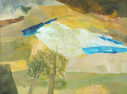 Ram Kumar’s recent paintings attest, also, to another kind of reconciliation: since the aesthetic experience belongs, eventually, to the realm of samsara rather than that of nirvana, it cannot be defined by severity of structure alone; the impulse towards the voluptuary insinuates itself even into the sternest asceticism. Motivated by one pole of his sensibility, Ram Kumar has often acted as an ‘inquisitor of structures’ (the phrase is Wallace Stevens’), translating the earth in the idiom of the surveyor’s map, so that a topographical code of contour lines and benchmarks constrains the deep saturations of the landscape. But he has also been tempted to oscillate to the other and romantic pole of his sensibility: taking a passionate and unabashed delight in the physicality of the vista, its capacity for moodiness and unstable beauty, he has celebrated the flush of magnolias in bloom, the gravid slopes borne down by clouds.