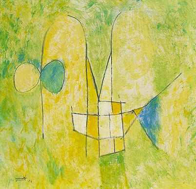 Painted in 1953, the present lot is a significant work that is poised at a pivotal moment in Gaitonde's oeuvre, when "the need to establish a meaningful relationship between line and painted surface," according to critic Dnyaneshwar Nadkarni, was one of the artist's primary concerns. Gaitonde's work underwent a critical transformation in the 1950s, when he turned from the purely figurative, towards abstraction. Early on this journey, he...