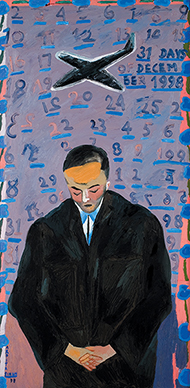 Arpita Singh often explored issues of communal violence that underpin urban India, by juxtaposing images of people with everyday objects, weaving fragments of stories together. 31 Days of December sets a solemn figure against a backdrop of the days of the month, scrawled anachronistically across the canvas. Eyes shut, head bent and fingers interlocked, he appears to be in prayer, or in mourning. Above him is a plane: a motif that appears...