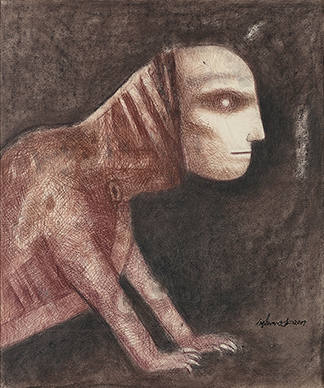 Ganesh Pyne is obsessed with death. He can't forget his first brush with death, in the summer of 1946, when communal riots had rocked Kolkata. His family was forced out of their crumbling mansion. As he roamed around the city, he stumbled upon a pile of dead bodies. On the top was the body of a stark naked old woman, with wounds on her breast. No wonder then his paintings rarely has light backgrounds, and blue and black happens to be his favorite colors. Death also finds its way back into his canvas through different motifs. Working mostly in tempera, his paintings are rich in imagery and symbolism. Pyne was born in Kolkata and grew up in a decaying mansion. He also grew up on stories told by his grandmother --- fold stories, mythological stories, and fairy tales. He spent several evenings in smoky Kolkata cafes discussing communism and Picasso with his friends. "My childhood memories revolve around Kolkata. The sounds and smells of this city fill my being. I love Kolkata." He doesn't remember the first time he started to paint, but does remember the anger that he drew from his family over his decision to become an artist. Pyne, nevertheless, took admission in the Government College of Arts and Crafts, Kolkata. "My first painting was 'Winter's Morning' which showed me and my brother going to school," he recalls. In 1963, he joined the Society for Contemporary Artists. During that period he made small drawings in pen and ink. "I did not have enough money then to buy color," Pyne says. This was also the period of experimentation. The anger and despair of the 70s fuelled one of the most fruitful periods' in his life as an artist that culminated in works like 'Before the Chariot' and 'The Assassin'. However, sometime in the 80s, he shut himself from the world, driven away by the jealousy and pettiness that the art bazaar arose among his friends. Initially, Pyne painted watercolors and sketches of misty mornings and wayside temples, variously influenced as he was by Walt Disney and the art of Abanindranath Tagore. He counts Hals Rembrandt and Paul Klee as the other influences. His signature style shaped from his own experiences of solitude, alienation, pain, horror and moods of tenderness and serenity comes to surface in each of his works. At times, these images are offshoots of an idea that may have flitted through his mind. At others, they resonate lines from poems that may have made an impression on his mind. The lines are bold, precise, controlled and the drawings that emerge are potent both in form and content. Stripped of color, they convey the architectonic quality in the structuring of the images. Equally devoted to cinema as he is to painting, Pyne has also drawn inspirations from movies made by Fellini and Ingmar Bergman. Today, he is known as the foremost exponents of the Bengal School of art. Pyne passed away in 2013.