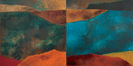 "... I had an exhibition...titled mirror images. The diptychs were of equal size and images were either reversed or repeated in the adjacent canvas. Form and colour underwent change, as they passed from one canvas to the other, as if waking from sleep - two worlds, both the similar and dissimilar at the same time."