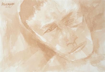 Padamsee’s interest in structure and form takes shape from landscapes, and is borne from an interest in Sanskrit texts such as the Abhijanashakuntalam . His Mirror Images reflect a concern with the duality of existence. His portraits and heads are treated with the same interest in constructing form rather than in the specifics of portraiture. The only occasion when he created identifiable portraits was in 1997, with his “Gandhi” series of works on paper in watercolour and charcoal.