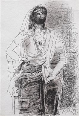 "My drawings and paintings help to express my feelings. My drawings are not the exact copy of what I have seen through my eyes; but I feel they are the impressions of beauty, which are constantly imprinted on my inner vision and emerge as black and white forms on paper," he expresses. Reminiscent of an age long gone, his sketches are a constant search for greater freedom of expression and serve as an outlet for his creative energy. They capture the essence of the subject in all its glory, and yet leave something to the imagination with shadowy faces.