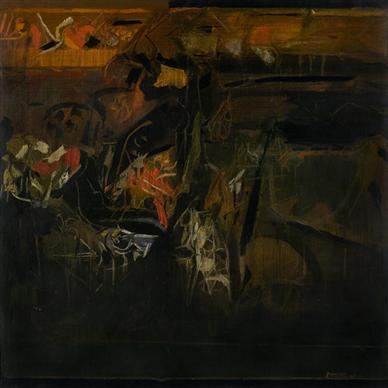 By this time, in the 1960s, Raza began departing from the Cubist style to a more fluid and fluent form of expression. In 1962, he was invited as a visiting lecturer at the University of California in Berkeley, USA. The American abstract expressionist movement had taken hold over the Parisian art scene, and Raza saw greater freedom in this particular style, inspired by artists such as Mark Rothko whose works he encountered during his time in the US. He gradually abandoned all figurative and representational forms and the carefully constructed compositions of the 1950s, and began making gestural strokes on canvas, where the figure and ground were no longer separated, but blended in a composite whole. In his medium too, he switched from oil to acrylic. Raza’s gestural works of this period were emotional essays full of colour and vibrant movement. “...colours were not being used as merely formal elements: they were emotionally charged. Their movements or consonances on the canvases seemed more and more to be provoked by emotions, reflecting or embodying emotive content. The earlier objectivity, or perhaps the distance started getting replaced or at least modified by an emergent subjectivity – colours started to take the light load of emotions more than ever before.” (Vajpeyi, p. 78)