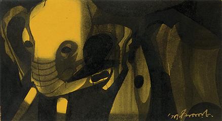Ganesh Pyne is obsessed with death. He can't forget his first brush with death, in the summer of 1946, when communal riots had rocked Kolkata. His family was forced out of their crumbling mansion. As he roamed around the city, he stumbled upon a pile of dead bodies. On the top was the body of a stark naked old woman, with wounds on her breast. No wonder then his paintings rarely has light backgrounds, and blue and black happens to be his favorite colors. Death also finds its way back into his canvas through different motifs. Working mostly in tempera, his paintings are rich in imagery and symbolism. Pyne was born in Kolkata and grew up in a decaying mansion. He also grew up on stories told by his grandmother --- fold stories, mythological stories, and fairy tales. He spent several evenings in smoky Kolkata cafes discussing communism and Picasso with his friends. "My childhood memories revolve around Kolkata. The sounds and smells of this city fill my being. I love Kolkata." He doesn't remember the first time he started to paint, but does remember the anger that he drew from his family over his decision to become an artist. Pyne, nevertheless, took admission in the Government College of Arts and Crafts, Kolkata. "My first painting was 'Winter's Morning' which showed me and my brother going to school," he recalls. In 1963, he joined the Society for Contemporary Artists. During that period he made small drawings in pen and ink. "I did not have enough money then to buy color," Pyne says. This was also the period of experimentation. The anger and despair of the 70s fuelled one of the most fruitful periods' in his life as an artist that culminated in works like 'Before the Chariot' and 'The Assassin'. However, sometime in the 80s, he shut himself from the world, driven away by the jealousy and pettiness that the art bazaar arose among his friends. Initially, Pyne painted watercolors and sketches of misty mornings and wayside temples, variously influenced as he was by Walt Disney and the art of Abanindranath Tagore. He counts Hals Rembrandt and Paul Klee as the other influences. His signature style shaped from his own experiences of solitude, alienation, pain, horror and moods of tenderness and serenity comes to surface in each of his works. At times, these images are offshoots of an idea that may have flitted through his mind. At others, they resonate lines from poems that may have made an impression on his mind. The lines are bold, precise, controlled and the drawings that emerge are potent both in form and content. Stripped of color, they convey the architectonic quality in the structuring of the images. Equally devoted to cinema as he is to painting, Pyne has also drawn inspirations from movies made by Fellini and Ingmar Bergman. Today, he is known as the foremost exponents of the Bengal School of art. Pyne passed away in 2013.