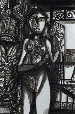 When one looks at Goud’s work, rustic, raw, and potent might be the first words that come to mind. His portraits of men and women represent the dynamic Indian ethos rather than particular individual identities. A recurrent theme with the artist is that of the erotic, treated as an active and powerful aspect of male and female sexuality and existence. Goud’s work is dramatic; his protagonists are raw and vivacious in their appeal, imbibed with energy that reverberates through his strokes and textures. Most of Goud’s art is centered on the rural, recreating landscapes from his childhood as if they were frozen in time. In the artist’s later work, his figures turn softer, more introspective than brash in their outlook.