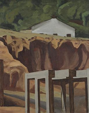 Part of the same series, these small format landscapes from the late 1980s were created on site in Pokhran as part of Patwardhan’s drive to capture ‘the real and the normal’ in his work, almost ascetically removing all traces of the self. Fellow artist Gieve Patel describes these works as “descriptive to the point of literalness”, further explaining that Patwardhan’s aim in this series was, “…to paint it all, tree by tree so to speak; the most important thing being the painting of it in the present, here and now, right before the subject, a pursuit that is almost totally eliminated today in the practice of artists all over the world” (“Two Visions” in Gieve Patel, Sudhir Patwardhan , Bose Pacia exhibition catalogue, 2006, p. 56).