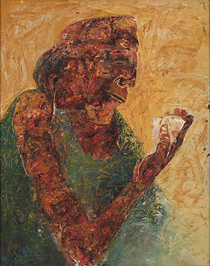 Signed 'KKhanna' (lower left); signed and inscribed 'KRISHEN KHANNA/ KKhanna/ "CARD PLAYERS" ' (on the reverse)