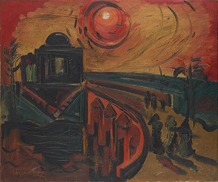 Signed and dated 'Avinash 55' (lower left); inscribed 'AVINASH / Shah Alam's Tomb' (on the reverse)
