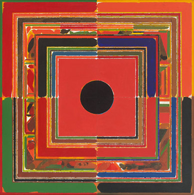 The emotive qualities of nature combine with the spiritual intellect of geometry in this 1982 painting by Raza. The square format canvas was created when Raza was still painting his La Terre series of abstract gestural works but had also discovered the beauty of geometry. Though the loose brushwork is still visible, it is now circumscribed within a definite frame composed of solid frames of colour. The composition that is subtly divided into...
