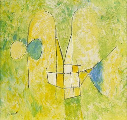 Painted in 1953, this paperwork is poised at a pivotal moment in Gaitonde's oeuvre, when "the need to establish a meaningful relationship between line and painted surface," according to critic Dnyaneshwar Nadkarni, was one of the artist's primary concerns. Gaitonde's work underwent a critical transformation during this decade, when he turned from the purely figurative, towards abstraction. Early on this journey, he encountered the work and...