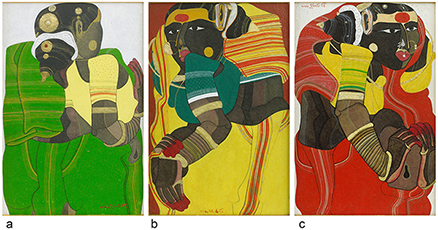 c) Untitled Signed and dated in Telugu (upper right) 1994 Acrylic on paper pasted on board 14.75 x 9.75 in (37.3 x 25 cm) (Set of three)