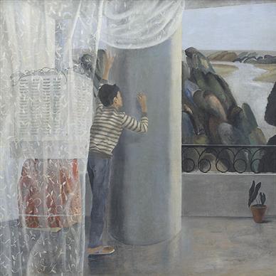 In these large, frequently autobiographical canvases, the artist adopted a muted and uncomplicated photorealist idiom,...