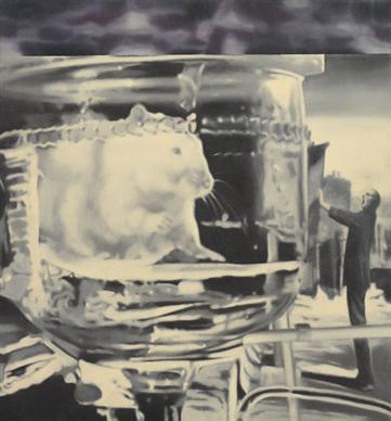 Trained as a sculptor, T. V. Santhosh held his first solo show of paintings in 2003. This canvas, from the same period, reflects the artist’s commitment to voicing his concerns about the precipice over which he believes our world dangerously teeters. As the critic Ranjit Hoskote explains, Santhosh’s “is an art attentive to the specific idioms of contemporary global conflict, to the diabolical pact between knowledge and terror, the skewed...