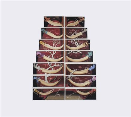 Babies and children also feature provocatively in several of Kallat's works. All these works touch on motifs found throughout her art - the cycle of life, and images presented in a highly exotic and unusual manner.