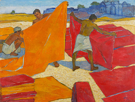 Born on August 13, 1915 in Lahore, Satwalekar is considered to be a doyen of Contemporary Indian Art. He had rich legacy left behind by his father, Pandit S. D. Satwalekar, a renowned turn-of-the-century painter and a Vedic scholar. Determined to carry forward the legacy, Madhav Satwalekar first studied at Sir J.J. School of Art, before going to Europe (1937 to 1940) to study at Florence Academy (Italy), Slade School (London) and Academic Grand Chamiers (Paris). He won the Mayo Medal in 1935.