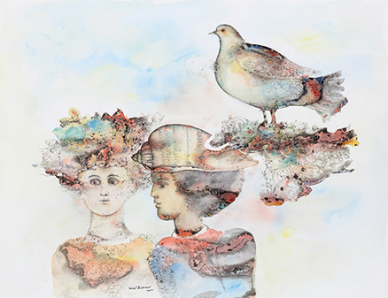 Born in Kolkata in 1935, Sakti Burman studied at the Government College of Arts and Crafts, Kolkata, and later at the École Nationale des Beaux Arts in Paris. Burman uses pointillism and a marbling technique achieved by blending oils with acrylics to create fresco-like works on paper and canvas. Burman’s paintings often evoke a surrealist feel, referencing multiplicities of time and place. His art drew extensively from Hindu and European mythology, as well as from the artist’s own memories. Suggesting surrealism, his paintings are populated by humans, animals and cityscapes that are dreamlike in appearance. His defining oeuvre owes largely to his technique of marbling, which he arrived at after years of experimentation. Burman travelled to Italy in 1958 and his encounter with the frescoes of Giotto, Piero de la Francesca and Simone Martini inspired him to assimilate their monumentality and textures in his works.