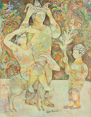 Born in Kolkata in 1935, Sakti Burman studied at the Government College of Arts and Crafts, Kolkata, and later at the École Nationale des Beaux Arts in Paris. Burman uses pointillism and a marbling technique achieved by blending oils with acrylics to create fresco-like works on paper and canvas. Burman’s paintings often evoke a surrealist feel, referencing multiplicities of time and place. His art drew extensively from Hindu and European...