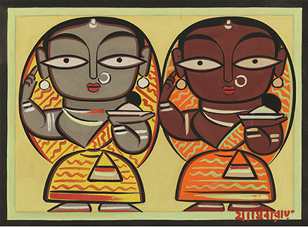 Born in 1887 in a small village in Beliatore, Bankura district, West Bengal, Jamini Roy joined the Government School of Art, Kolkata in 1903. He began his career by painting in the Post-Impressionist genre of landscapes and portraits, very much in keeping with his training in a British academic system. Yet, by 1925, Roy had begun experimenting along the lines of popular bazaar paintings sold outside the Kalighat temple in Kolkata. By the early...