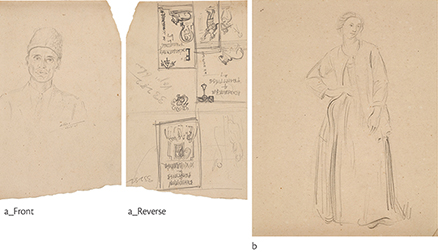 a) Untitled Signed and dated 'Hebbar/ 13-3-45' (centre) 1945 Graphite on paper 7 x 4.25 in (17.5 x 11 cm) This is a double-sided work