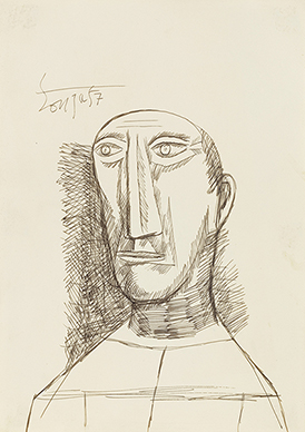 In 1949, Souza left for London where after a few years of struggle he made a mark on the art scene. In the 1950s, he shot to fame with his one-man show at Gallery One in London, at the same time his autobiographical essay, Nirvana of a Maggot , was published. In 1967, he migrated to New York where he received the Guggenheim International Award. He remained there till his death. Souza’s works were part of several successful exhibitions around the world. His works are in the collections of the Tate Gallery, London and the National Gallery of Modern Art, New Delhi. He has also exhibited at the Gallery Creuze, Paris, in 1954; at Arts 38, London, in 1975 and 1976, at Bose Pacia Modern, New York, in 1998; and Francis Newton Souza Rare Works: 1965-2001 ,, at Galerie 88 in Kolkata.
