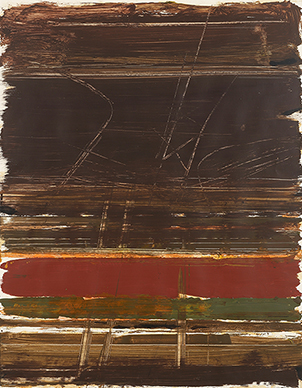Raza's gestural abstract expressionism underwent a transformation in the late 1970s and '80s, influenced by his increasingly frequent visits to India. The works of this period retained the fluid brushstrokes of the previous decade, but included more geometrical elements, as seen in the present...