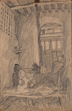 Certain images seem to grope for a brief and nearly flat but vital silhouette, whereas in some others the painter delights in bringing out palpable, sensuous volumes of bodies, clothes and hair materialising through the light and shadow sliding over their surface. The figures are self-contained, and Patwardhan respects their individuality and inaccessibility.