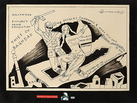 Signed 'Husain' (upper right) and bearing printed sticker (lower centre)
