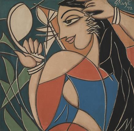 George Keyt, one of the foremost modernists from Sri Lanka, was known for his distinct artistic idiom and knowledge of Indian and Buddhist mythology, South Asian art practices, and Western art movements including Cubism. In his work, he strove for a unique vocabulary that highlighted his own preoccupations. "The lyric painting of George Keyt is sensuous Indian poetry brought to canvas... Keyt takes as his primary theme woman as the focus of...