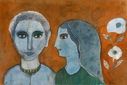Inscribed and dated '"Man, Woman & a pair of Flowers"/ By Badri Narayan/ Mumbai - 1st Oct. 2004' (on the reverse)